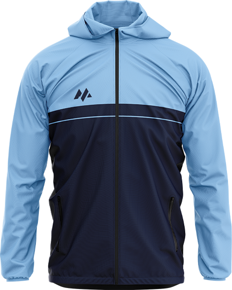 Our lightweight hooded rain windbreaker is perfect for training in chilly weather. Its custom wind cheater will keep the light rain away from your body but also allows your skin the breathe due to its wick away properties. The outside design can be fully customized in any colours, logos and design. It also has two zipped pockets to keep your personal items safe and full length zip to the front so you can obtain the best temperature for you.